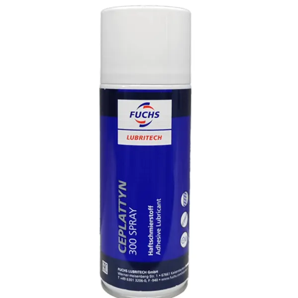 FUCHS Grease lubt fuchs-Lt ceplattyn 300400Ml (4043995127693). Greases Product Name Ceplattyn 300 Spray Application Lubricant Aerosol Form Of Supply 400 Ml Form Aerosol Colour Black Odour Characteristic Solubility Insoluble Density 0.71 To 0.73 G/Cm³ At 20°C Certificate Required (Sdrl) C32 – Material Safety Data Sheet / Coshh
