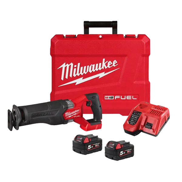 Milwaukee M18 Fuel Sawzall Reciprocating Saw Kit (2X 5.0Ah) (M18Csx2-502C). M18 Fuel Sawzall Reciprocating Saw (Tool Only) – 2X M18 Redlithium-Ion 5.0Ah Battery – M12 & M18 Rapid Charger